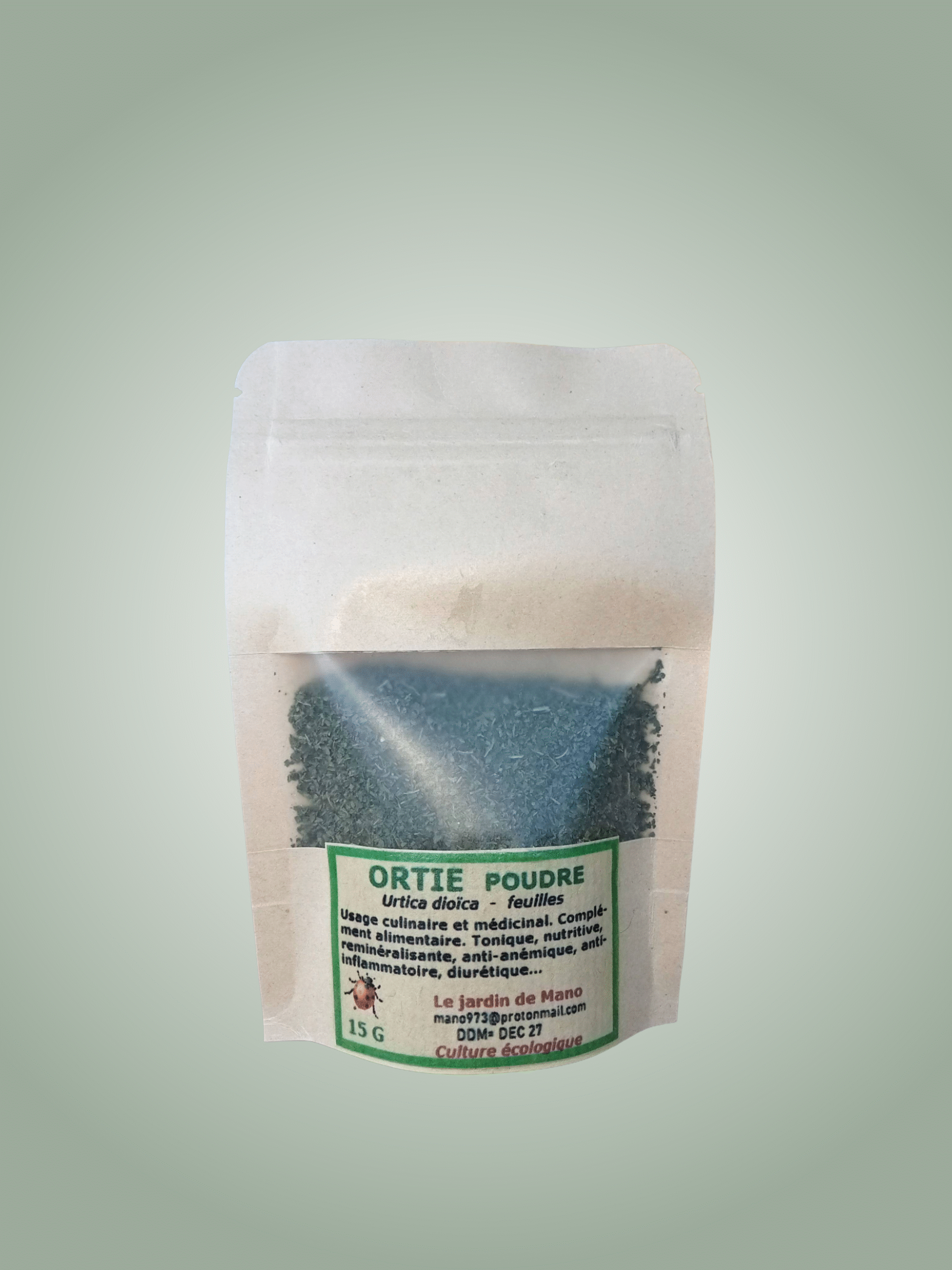 Utilisation : une cuiller à café à saupoudrer sur la nourriture, à ajouter dans une tisane – 1 à 3 fois par jour.